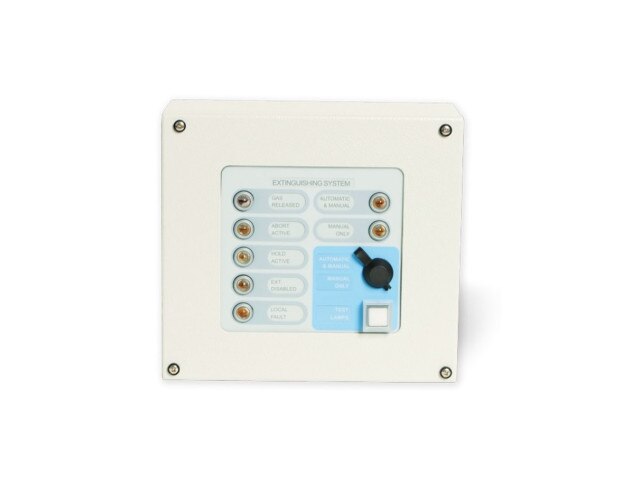 Status Lamp Unit voorzien van indicatoren en auto/handmatige schakelaar, weerbestendig (SLU 4). Deze module wordt met 2 draden verbonden aan de gasbluscentrale.